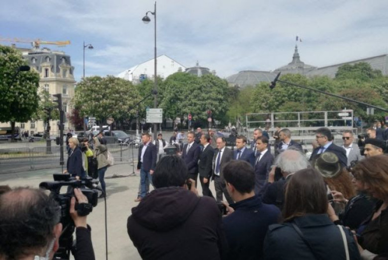 Մակրոնին ուղեկցել են Ֆրանսիայի հայկական կազմակերպությունների համակարգող խորհրդի համանախագահներ Արա Թորանյանը և Մուրադ Փափազյանը: