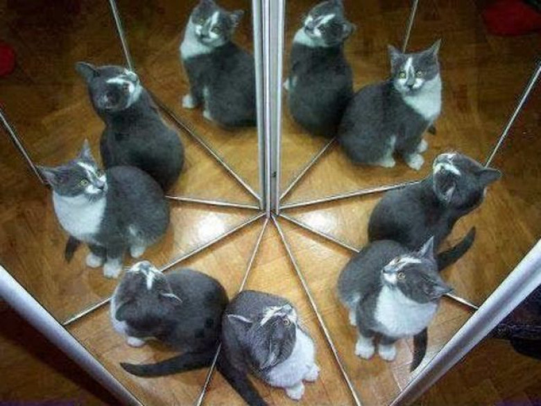 Вот вам новейшая головоломка с кошками и зеркалами! Присмотритесь повнимательнее и постарайтесь дать правильный ответ на вопрос: сколько же кошек изображено на фото?