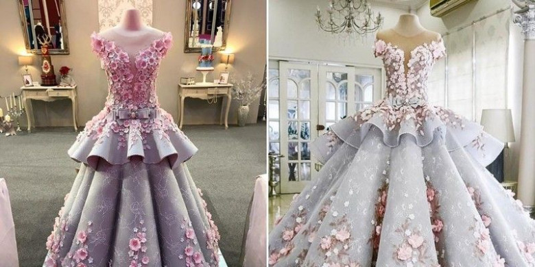 Он был испечен кондитерской Emma Jayne Cake Design и вдохновлён кутюрным платьем дизайнера Мака Туманга. Вот оно, настоящее платье во всём своём серо-розовом великолепии.