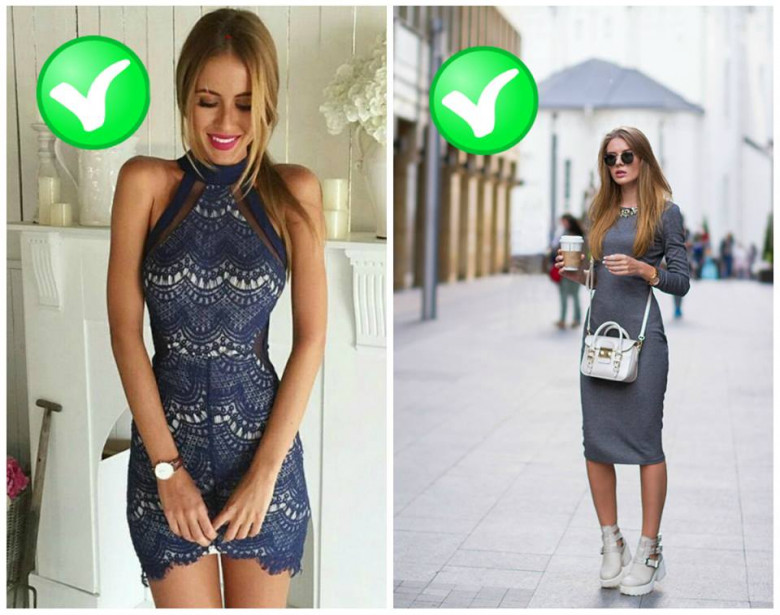 Если у вас стройная фигура и женственные формы, то облегающие платья ваш вариант. Красиво подчеркнутая фигура не останется не замеченной и будет привлекать внимание особей мужского пола. Но запомните, если платье облегает, то зона декольте, плечи и спина должны быть закрыты. Мужчины любят угадывать, что скрывается под одеждой, а закрытое облегающее платье, заставит угадывать еще больше. В противном случае, если вы покажете все свои прелести, это напрочь отобьет интерес мужчин.