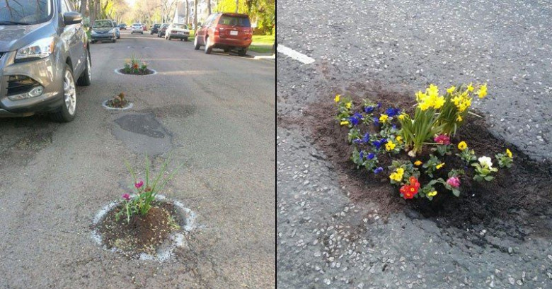 Сделав такие красивые цветочные ямки, вы сможете придать городу красоты и заодно решить одну из самых насущных проблем водителей! Если в вашем городе тоже проблемы с дорогами, то убедитесь в том, что это законно и соберите команду, которая будет вам помогать, а потом смело начинайте преображать дороги! ![]()