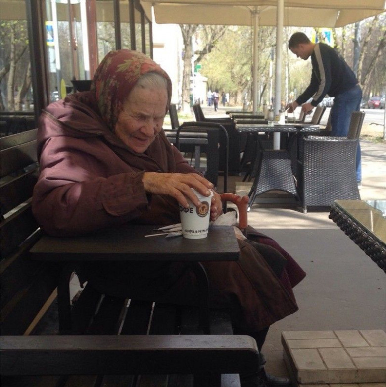 — Эта бабушка – ветеран Великой Отечественной войны, но лично я ее не знаю. Она каждый день приходит, и я ей просто чай даю, — рассказал газете "Комсомольская правда" Еремей, официант кафе.