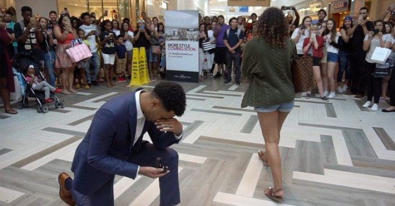 Парень сделал предложение посреди торгового центра, а она отказала… Только взгляни на реакцию толпы!