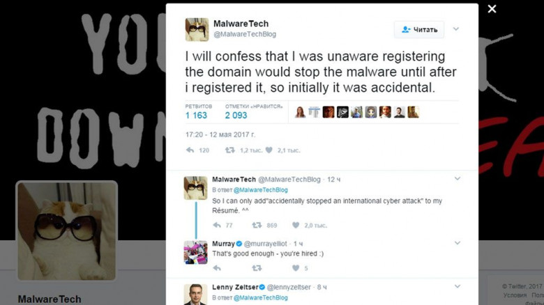 @MalwareTechBlod также добавил, что теперь может занести в свое резюме, как он «случайно остановил международную кибератаку».
