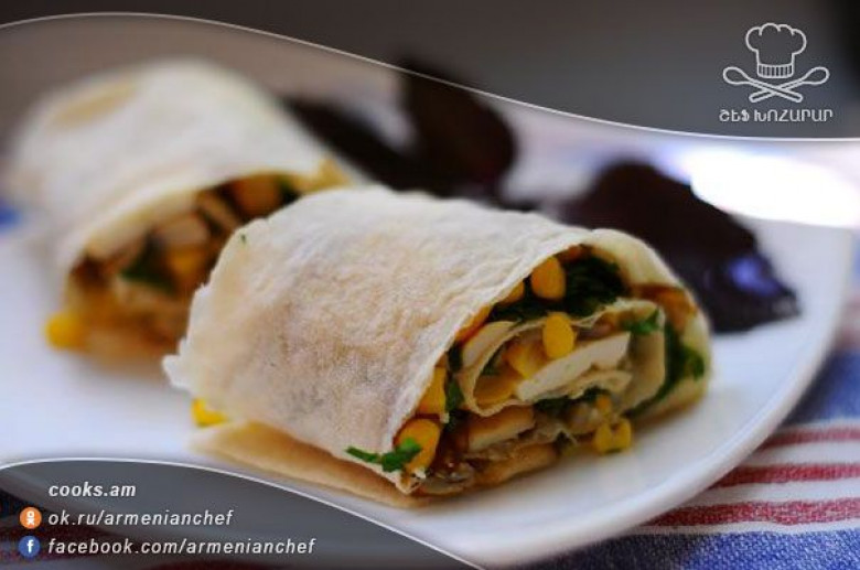 Այս բաղադրատոմսի մեջ օգտագործվել է տոֆու պանիր, որը սոյայից է պատրաստված և բուսական ծագում ունի: Իսկ, եթե պահքի մեջ չենք, կարող ենք պանրիկի փոխարեն մայոնեզ քսել լավաշի վրա, որպեսզի բաղադրիչները լավաշին կպնեն և չառանձնանան: Սիրով բերում ենք նաև լավաշի բաղադրատոմսը: