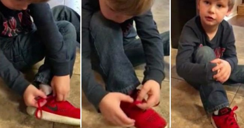 Этот 5-летний мальчик придумал гениальный способ завязывать шнурки. Какой умничка!