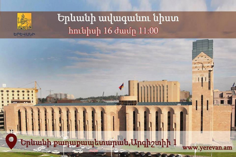 2017 թվականի հունիսի 16-ին` ժամը 11.00-ին, կգումարվի Երևան քաղաքի ավագանու արտահերթ նիuտ՝ հետևյալ օրակարգով.