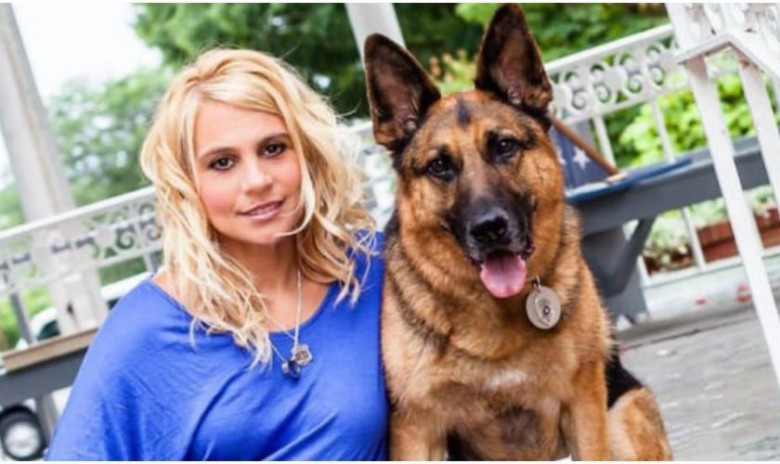 Кажется, что она просто фотографируется со своим псом. Но ты только посмотри, что у нее в руке...