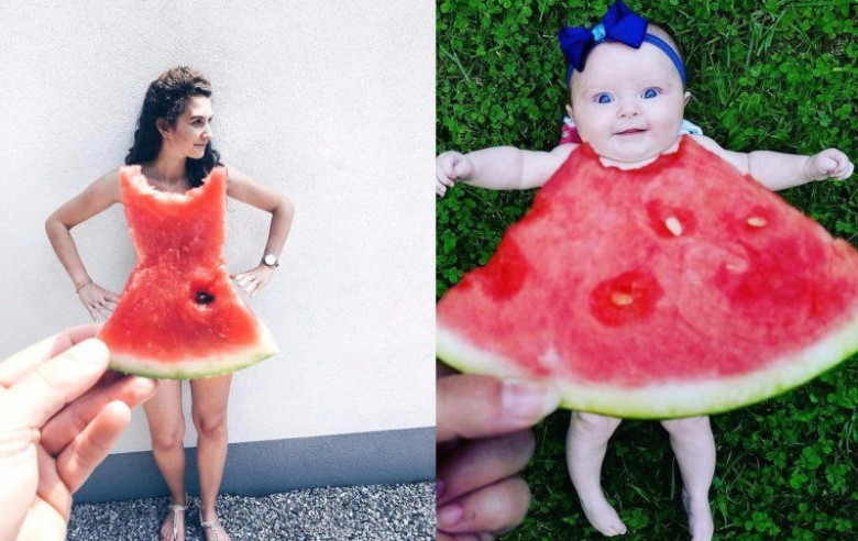 Это может быть платье разной длины и фасона, блуза с юбкой, длинная рубаха, купальник или балахон — все упирается в мастерство фигурно обгрызать арбузную мякоть. Да, можно взять и любой иной подходящий фрукт или овощ, который красиво выглядит, если его нарезать дольками. Но прямо сейчас в тренде именно сочные красно-зеленые арбузы. Участвуют и мужчины, и дети!