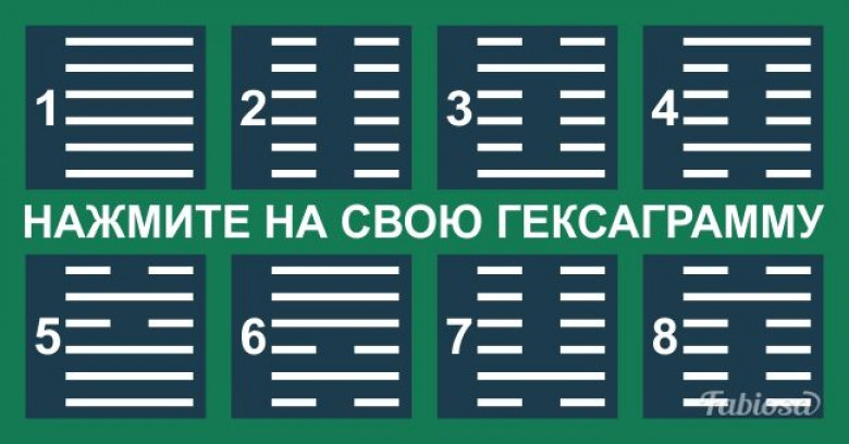 LifestyleЛюбите гадания? Тогда сегодня вам повезло, потому что мы предлагаем вам одно из самых древних гаданий по китайской Книге Перемен! Это гадание расскажет о том, чего вам стоит ждать от жизни в ближайшие 30 дней. Все довольно просто. Вам нужно посмотреть на 8 гексаграмм и выбрать ту, которая приглянулась вам больше всего. Прислушайтесь как к сердцу, так и к разуму.
