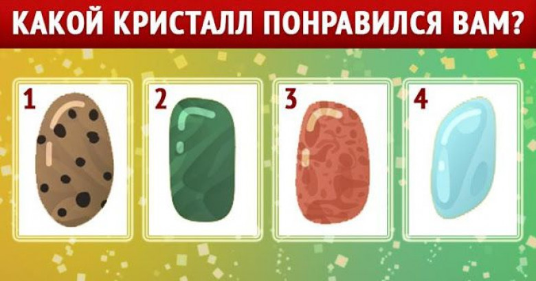 Порой в нашей жизни наступает чёрная полоса, и мы не знаем, куда двигаться дальше. Для того, чтобы разобраться в себе и своей проблеме, предлагаем пройти этот интересный тест. Вам всего лишь нужно выбрать один из представленных кристаллов: тот, который близок вашей душе. Сосредоточьтесь на том, что вас волнует. И прочтите результат: узнайте, чего ждать от будущего.