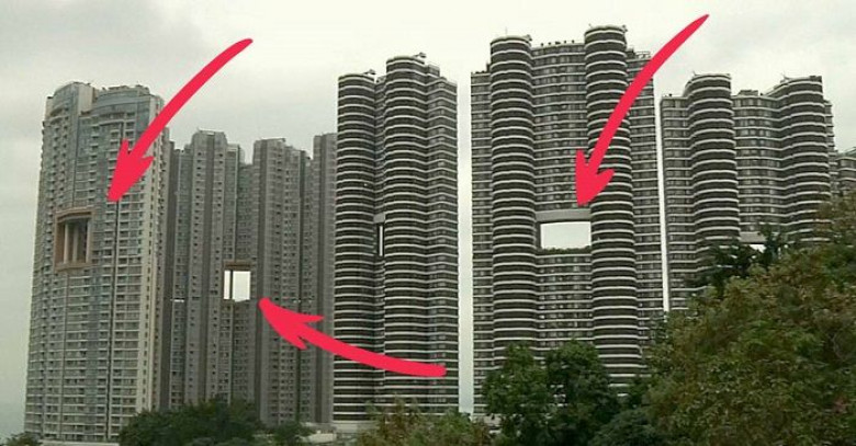 Небоскребы Гонконга имеют одну отличительную черту от подобных зданий в других странах — в них есть дыры.