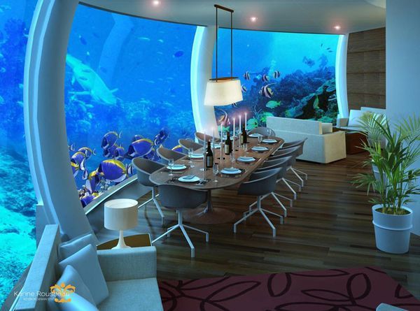С 2011 года на острове Фиджи работает необычный отель. Его “изюминка” заключается в том, что он находится под водой. На глубине 15 метров расположены обычные и королевские номера.