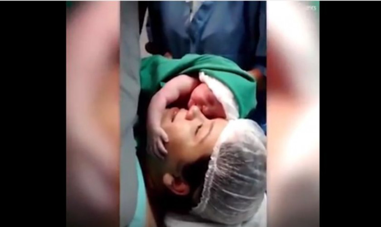 Новорожденная девочка обняла лицо матери и не хотела отпускать (Видео)