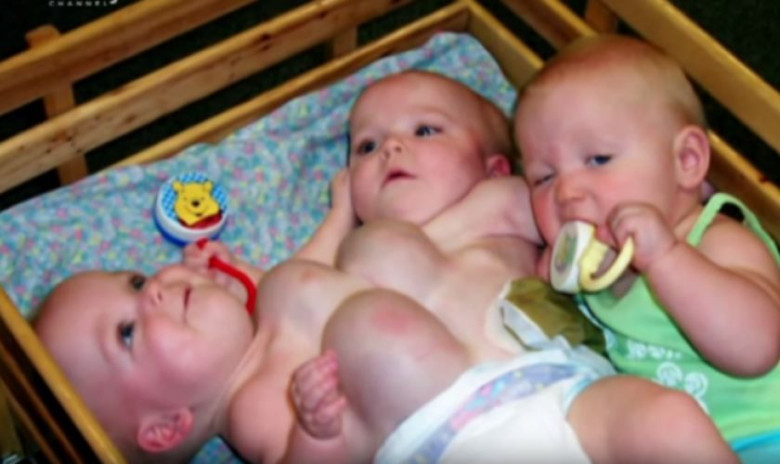 Когда родились эти тройняшки, двое из них были сращены друг с другом, что делает редкий случай появления тройняшек ещё более редким.