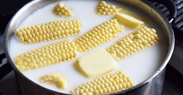 Такая спешка нужна из-за того, что в зернах кукурузы сразу после сбора происходит химическая реакция: сахар превращается в крахмал. Оттого молоденькую кукурузу лучше покупать с утра. А для потрясающего вкуса варить початки нужно не на воде, как мы привыкли, а на молоке!