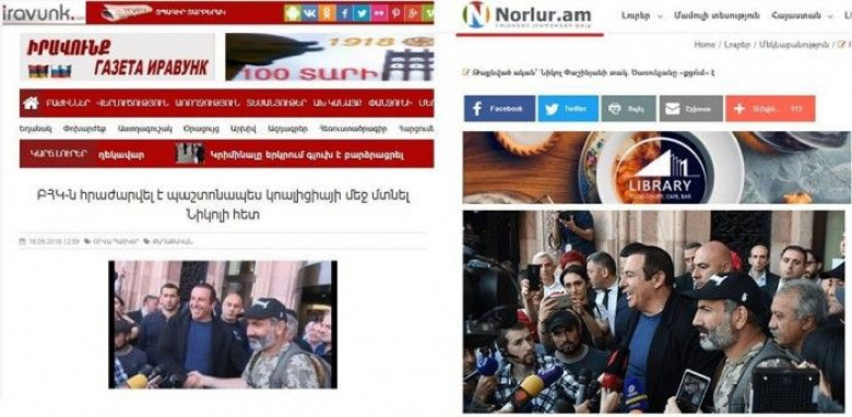 Այս երկու կայքերը, մեկը մյուսին փոխանցումով նույնաբովանդակ նյութեր են գրում Նիկոլ Փաշինյանի և Գագիկ Ծառուկյանի համագործակցությունը խաթարելու համար, ապատեղեկատվությամբ, կեղծ և թույնոտ նյութերով փորձում են ապակողմնորոշել ժողովրդին։Իհարկիե դա չի ստացվելու, քանի որ ժողովուրդը դատում է իր տեսածով և լսածով։ Ժողովուրդը իր աչքով տեսել և իր ականջով լսել է, որ Գագիկ Ծառուկյանը անձամբ Հրապարակում հայտարարեց, որ «Ծառուկյան» դաշինքը պաշտպանելու է վարչապետի ժողովրդի թեկնածուին, առանց նախապայմանների, իսկ հետո գործով ասպացուցեց դա՝ թե՛ մայիսի 1-ին, թե՛ մայիսի 8-ին ամբողջ խմբակցությունում միաձայն կողմ քվեարկելով ժողովրդի թեկնածուի համար։
