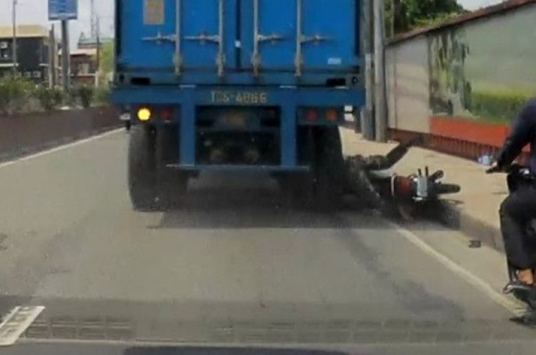 Ինչպես կարելի է տեսնել ճանապարհով երթևեկող ավտոմեքենայից նկարահանված տեսանյութում՝ տղամարդու սկուտերի անիվը քսվում է եզրագծին, և նա ընկնում է բեռնատարի տակ: Բեռնատարի վարորդը չի հասցնում արգելակել և հետևի անիվներով անցնում է սկուտերի վարորդի գլխի վրայով: