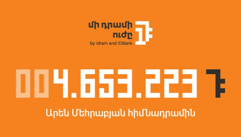ЭкономикаВ конце ноября IDBank и Idram подвели итоги очередной программы инициативы «Сила одного драма». Вся сумма, накопленная в этом месяце, будет переведена в благотворительный фонд «Арен Меграбян».