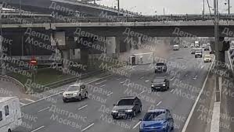 Два грузовых авто столкнулись на внутренней стороне 88-го километра МКАД. Судя по записи с камеры наблюдения, грузовик на скорости въехал в «Газель» так, что она вылетела в кювет и перевернулась. После аварии грузовик продолжил движение, ударился об ограждение, а затем взял левее, пересекая несколько полос движения.