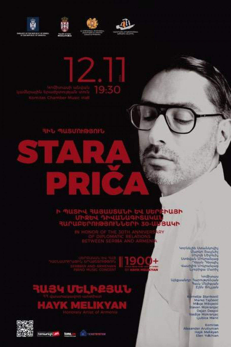 КультураԵրևանի մշակութային գունագեղ կյանքը շուտով կհարստանա բացառիկ երաժշտական իրադարձությամբ, որը կմիավորի սերբական և հայկական ավանդույթները. նոյեմբերի 12-ին, ժամը 19:30-ին, Կոմիտասի անվան կամերային երաժշտության տանը կկայանա անվանի հայ դաշնակահար Հայկ Մելիքյանի մենահամերգը: Համերգը 1900+ շարքի մասն է, որը նվիրված է 20-րդ դարի տարբեր ազգերի երաժշտությանը և այն ներառում է մեծանուն սերբ և հայ կոմպոզիտորների ստեղծագործություններ: