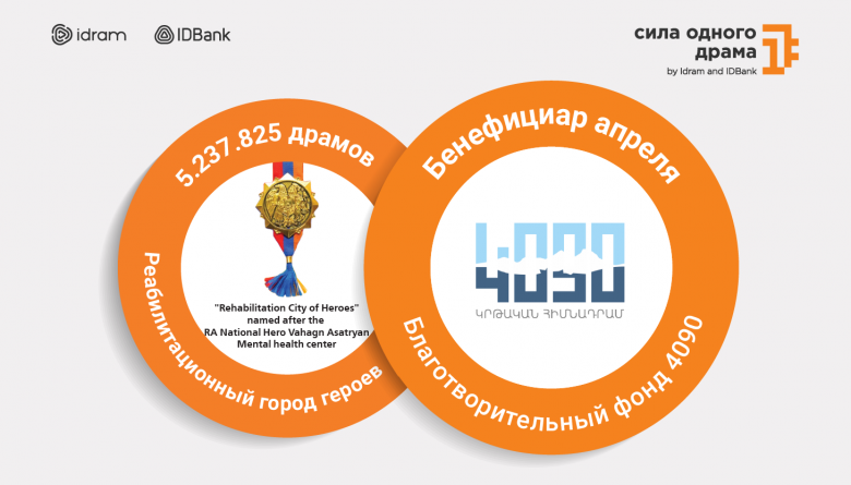 За предыдущий месяц в рамках акции «Сила одного драма» было собрано 5․237․825 драмов, которые были направлены Центру психического здоровья «Город реабилитации Героев». Цель центра — обеспечить психологическую и социальную реабилитацию участников войны и членов их семей.