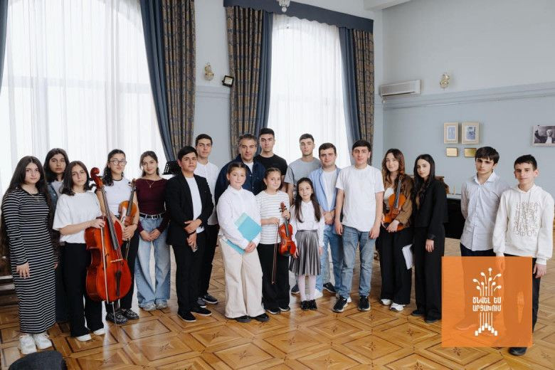 Юные музыканты программы «Родом из Арцаха» встретились с Национальным послом UNICEF, дирижером Маэстро Сергеем Смбатяном, которому принадлежит идея создания программы. Встреча была теплой, дружеской и полной новых идей. Они общались, делились своими историями, мыслями, мечтами о будущем. Рисовались идеи, планы, которые обязательно станут началом чего-то великого и важного.