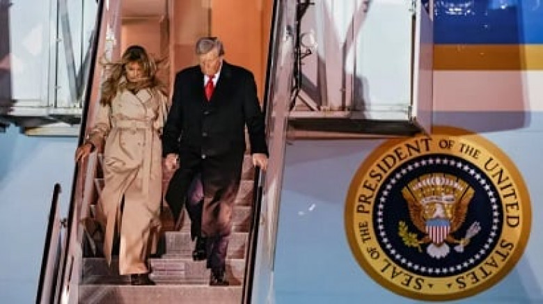 Трамп прибыл в Британию вчера вечером вместе с первой леди Меланией Трамп.