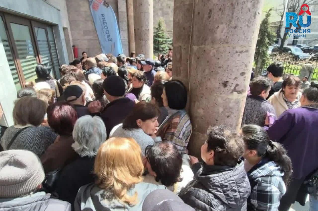 9 апреля в Ереване вынужденные переселенцы из Нагорного Карабаха получили гуманитарную помощь из России. Желающих оказалось больше, чем ожидалось.