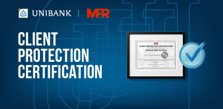ОбществоЮнибанк подтвердил соответствие международным стандартам защиты клиентов. Банк получил Сертификат защиты клиентов, присуждаемый MFR — международным рейтинговым агентством, предоставляющим оценку и техническую экспертизу в сфере устойчивого финансирования.