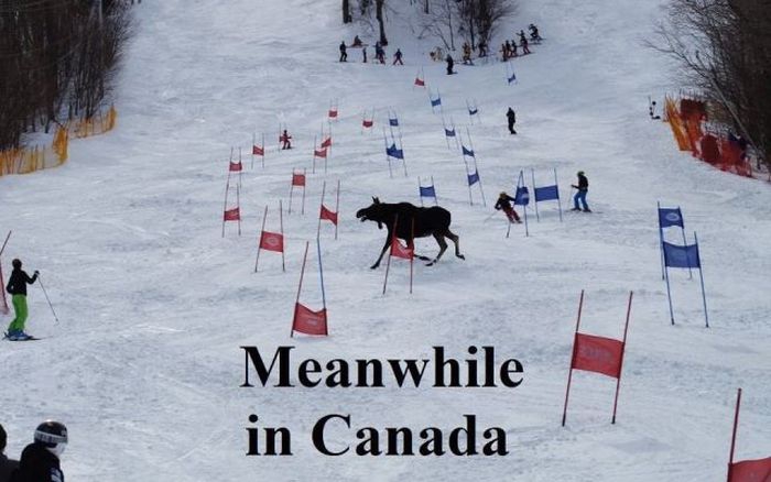 Каждая страна по-своему уникальна и необычна. Мы с вами хорошо наслышаны о собственных запредельных особенностях, но ведь они есть у каждой страны. Предлагаю вам коллекцию смешных фотографий в стиле "Тем временем в Канаде", в сатирической форме показывающую "обыденную" жизнь этой страны.