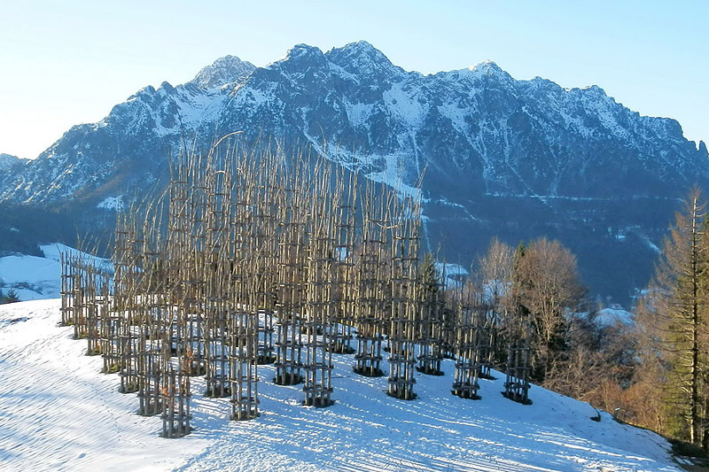 Собор из деревьев находится не в самом городе Бергамо, а примерно в 50 км от него, недалеко от деревни Zambla Alta у подножия горы Арера.