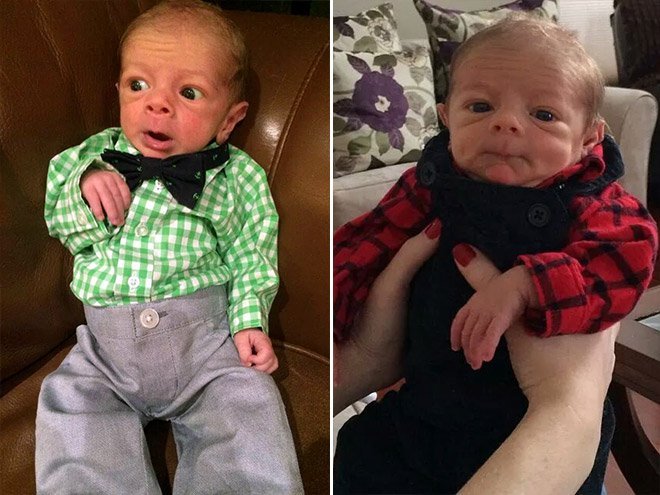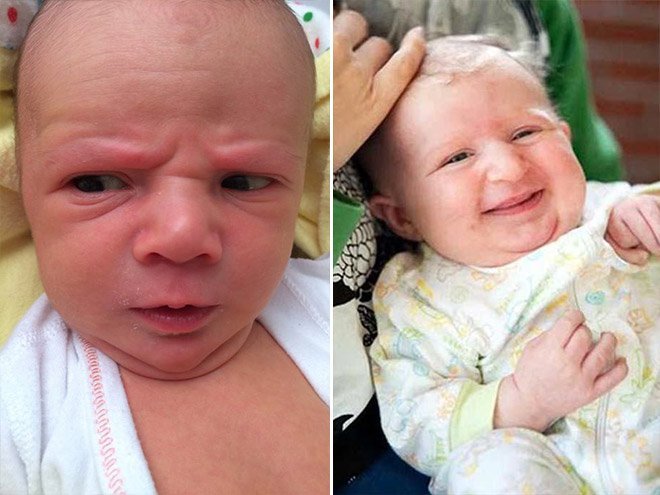Мимика некоторых новорождённых и маленьких малышей чуть старшего возраста иногда делает их похожими на взрослых людей. В такие моменты они выглядят очень забавно: