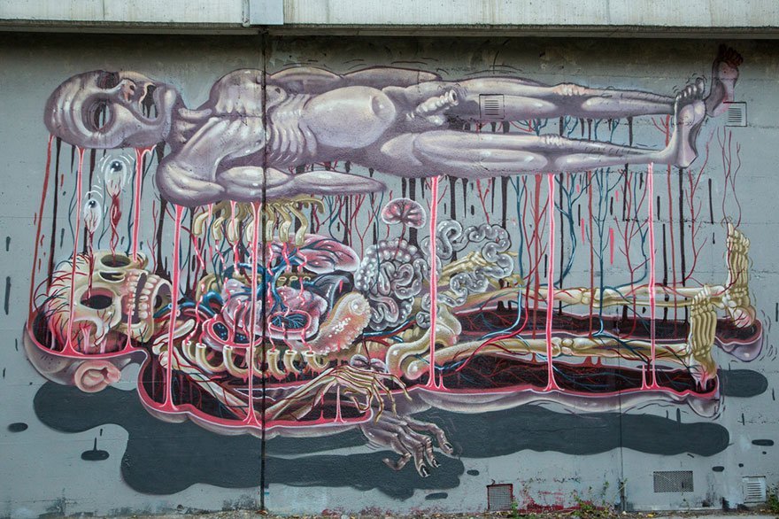 Блог Сегодня мы хотели бы познакомить вас с творчеством венского уличного художника, известного под ником Никос (Nychos). В его работах вы узнаете известных персонажей и героев популярных мультфильмов, однако все они изображены в очень необычном виде: они будто попали на стены домов прямо с хирургического стола.