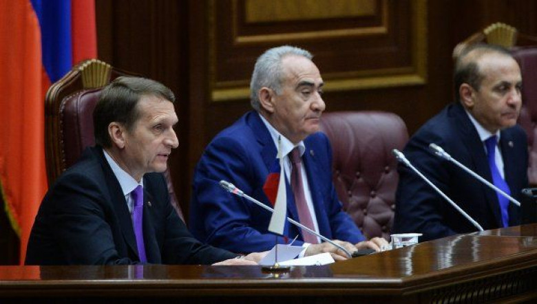 "Мы видим, что сейчас под давлением Вашингтона очень серьезно заторможено формирование общеевропейского пространства по линии Запад-Восток от Лиссабона до Владивостока", — сказал Нарышкин, выступая во вторник в Национальном собрании Республики Армения на круглом столе, который проходит в рамках постоянно действующего форума "Евразийская экономическая перспектива".