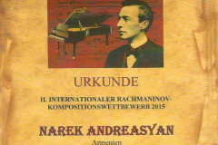 Նարեկ Անդրեասյանը Ռախմանինովի անվան միջազգային մրցույթում զբաղեցրել է երկրորդ հո...