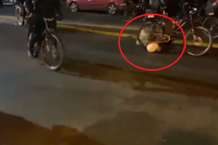 Ոստիկանը հեծանիվով անցել է ցուցարարի գլխի վրայով (տեսանյութ)