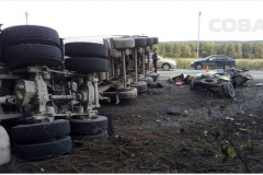 ՌԴ Եկատերինբուրգ տանող ավտոճանապարհին անվադողի խափանման հետևանքով բեռնատարը շրջվ...