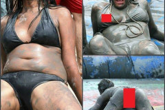 Աղջիկներն այնքան ինքնամոռաց են մասնակցում ցեխի այս փառատոնին, որ մոռանում են քող...