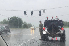 Женщина видит, как солдат стоит под проливным дождем Но причина его ожидания зас...