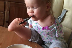 Эта маленькая девочка родилась без рук, но научилась кушать при помощи ног