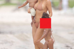 Ким Кардашян с детьми на пляже (Фото)