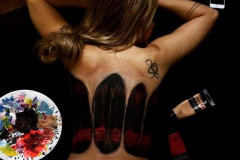 Галлюциногенный бодиарт на спине красивой девушки