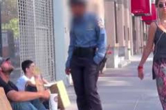 Когда полицейский бьет его, нищий остается спокойным. Но ребенок на заднем плане...