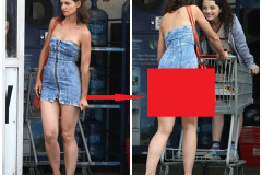 Надев очень короткий джинсовый сарафан Кэти Холмс засветила свою пятую точку (Фото)