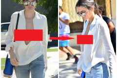 Кендалл Дженнер показала свои маленькие груди в большом вырезе кофточки (Фото)