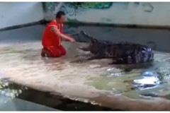 Крокодил укусил дрессировщика за голову на глазах у туристов (Видео)