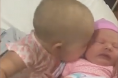 Փոքրիկն անդադար համբուրում է նորածին զարմուհուն (վիդեո)