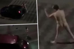 Շոկային տեսանյութ. մերկ տղամարդը բռնցքամարտել է ավտոմեքենաների հետ (տեսանյութ)