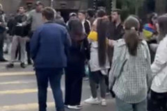 Բրյուսովի որոշ ուսանողները եռագույնը պատկերող ծուխ են արձակում ու միանում դասադո...